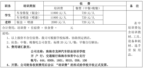 2014年省賽珠海龍神中職鈑噴大賽選手培訓通知