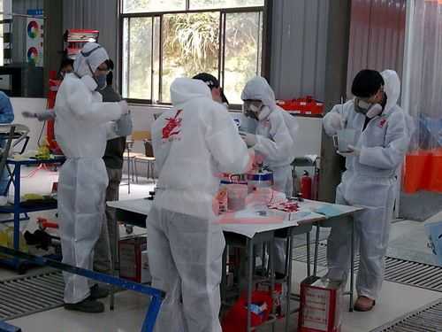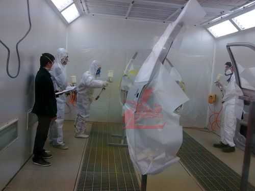 參賽選手統(tǒng)一著裝龍神贊助的噴漆防護(hù)進(jìn)行規(guī)范化的調(diào)漆比賽